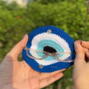 Handmade Evil Eye Blue Crochet Specs Cover – Soft Eyeglass Case, Boho Protective Pouch