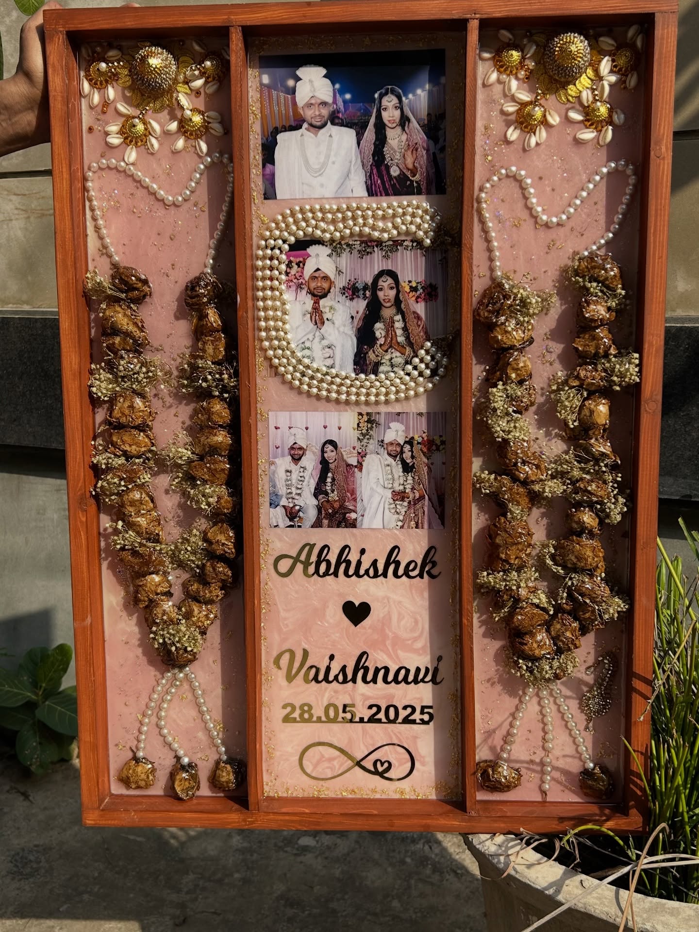 Your wedding varmala is not just flowers – it is an emotion, a memory and the beginning of a beautiful journey together. This 18×24 inch teakwood preservation frame turns those memories into a stunning keepsake that can be treasured forever.