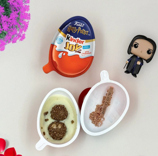 • Packaging: Hidden inside a Kinder Joy pack for a unique gifting experience
