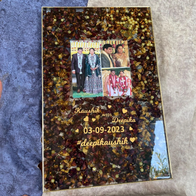 Handmade resin preservation photo frame with your photo, names & wedding date.